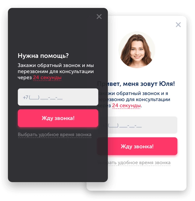 На страницу товара можно интегрировать дополнительную кнопку рядом с кнопкой «Добавить в корзину», которая откроет очень удобную форму обратного звонка. Если покупатель нажмёт эту кнопку, то появится всплывающее окно, где клиенту будет предложено оставить свой номер телефона, а продавец получит заявку и различную информацию о посетителе. Этот способ подходит для ускорения процесса взаимодействия с клиентом, кроме того, сервис предоставляет и другие услуги, в том числе и CRM-систему.