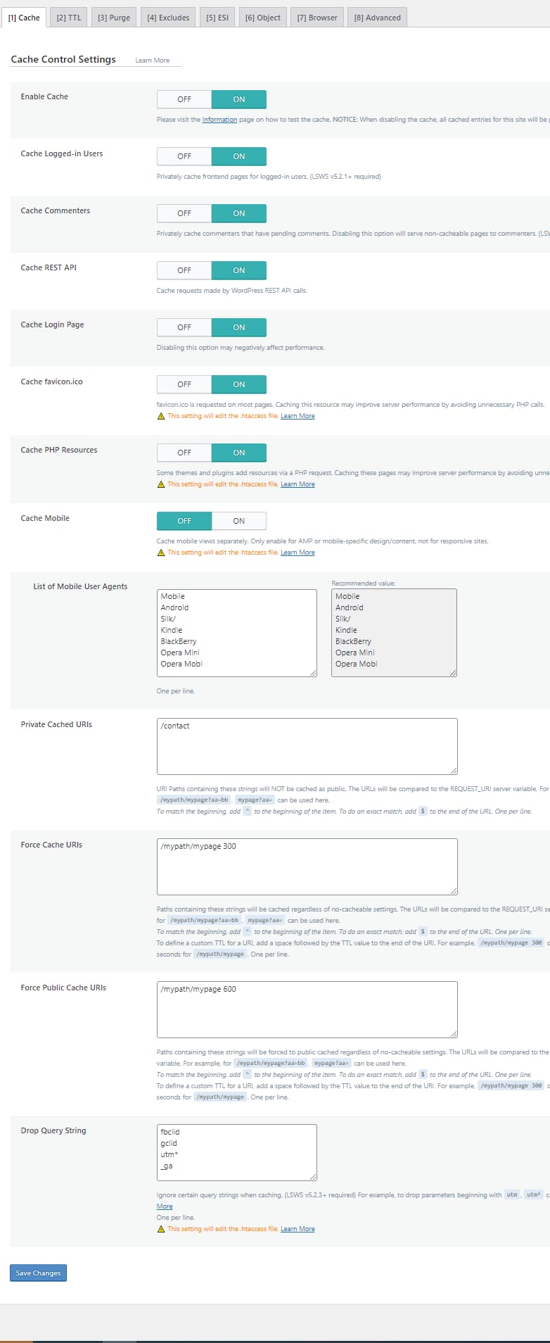 Настройки кэша LiteSpeed